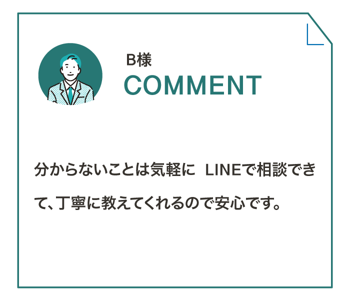 運用方法やご不明な点がでてきた時にいつでも気軽にLINEでご質問いただけます。