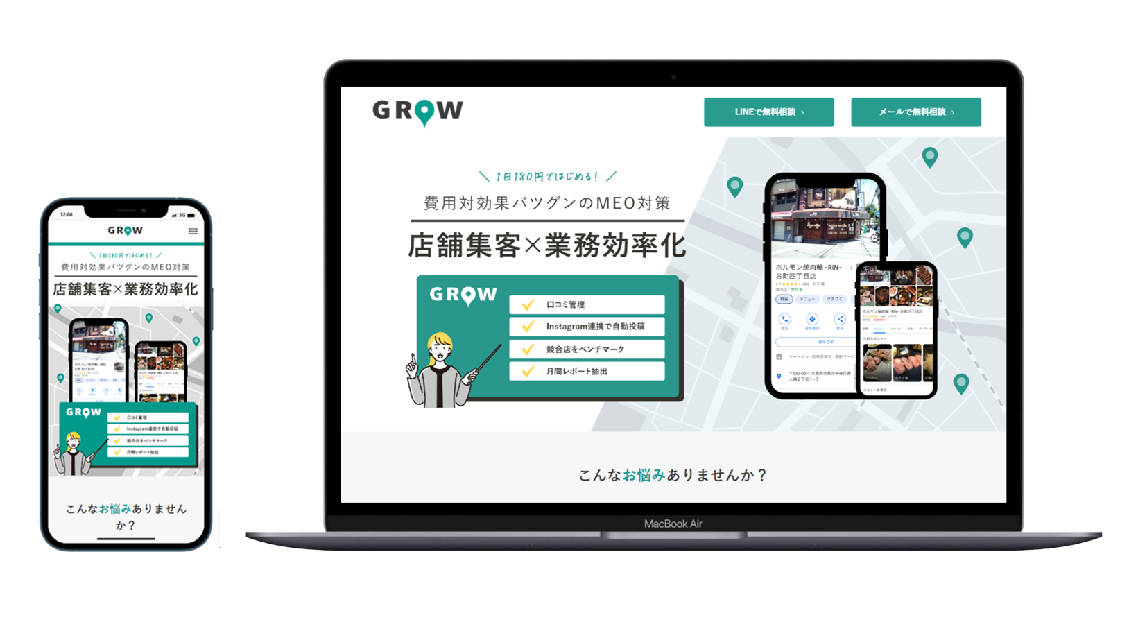 通常のホームページ制作では、30万円~100万円程の制作費が必要ですが、GRRENでは制作費などの初期にかかる費用や解約時の手数料も一切ありません。